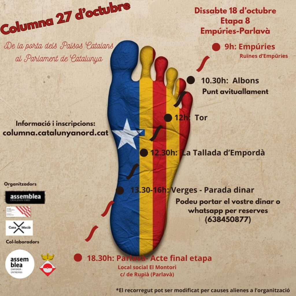 - 20h Sopar a Can Canet. Són convidats tots els marxadors de la Caminada per l’ANC Territorial de Castelló d’Empúries per la Independència